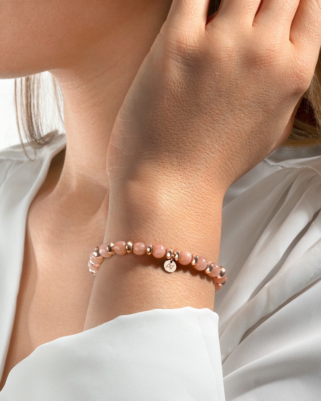 - Matière du bracelet Acier rosé inoxydable et pierre du soleil