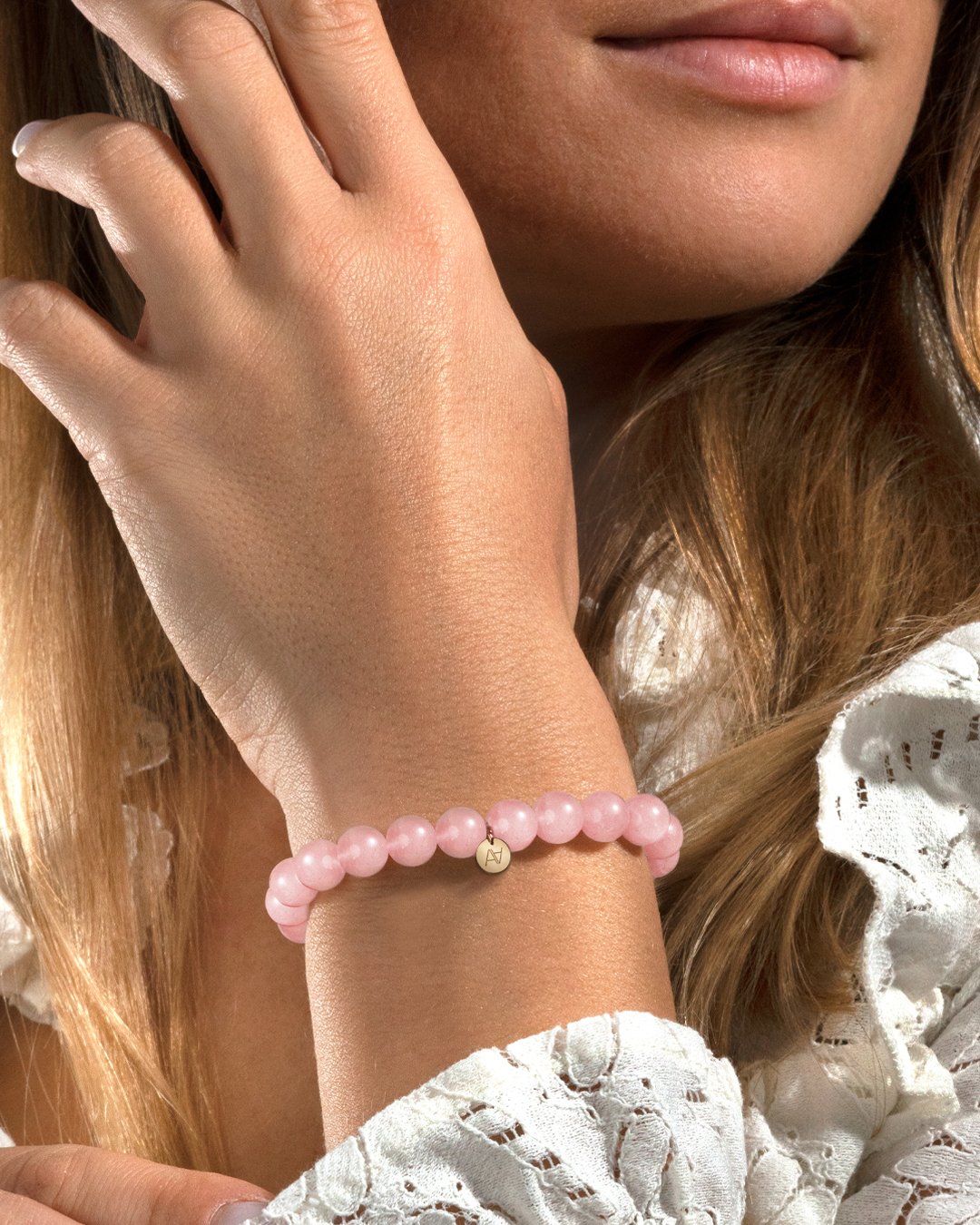 - Matière du bracelet Acier rosé inoxydable et quartz rose