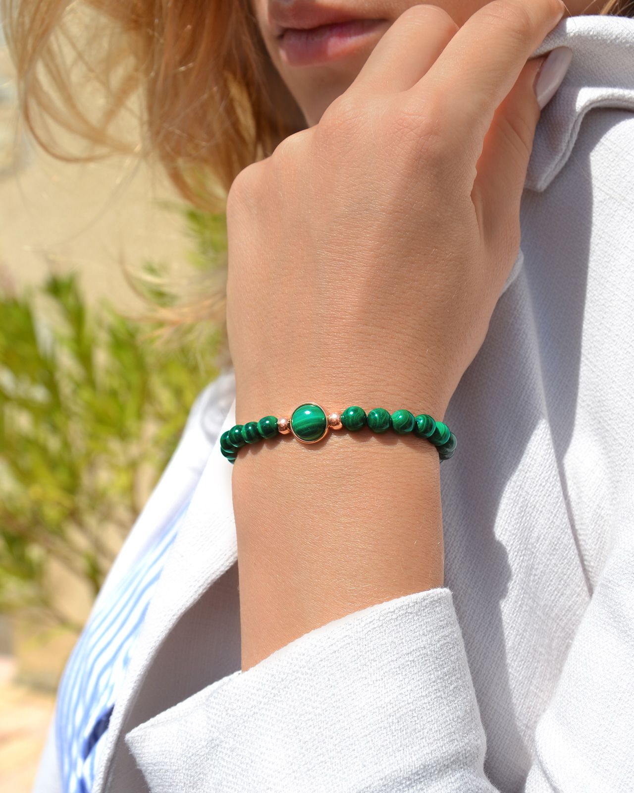 La Malachite symbolise l'assurance et le développement de l'énergie positive. Cette pierre harmonise avec douceur son porteur. Elle lui permet d'être clairvoyant et protéger, car elle éloigne les tourments et peurs de l'âme. La malachite permet donc d'aller de l'avant.