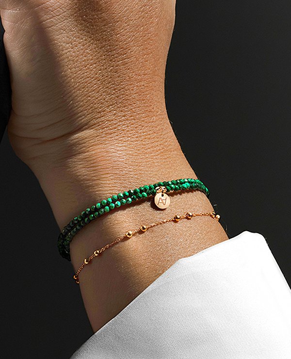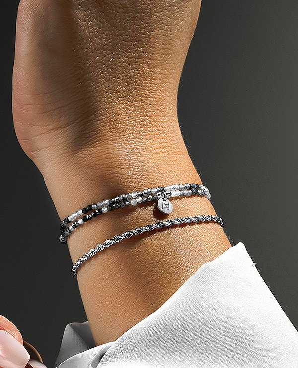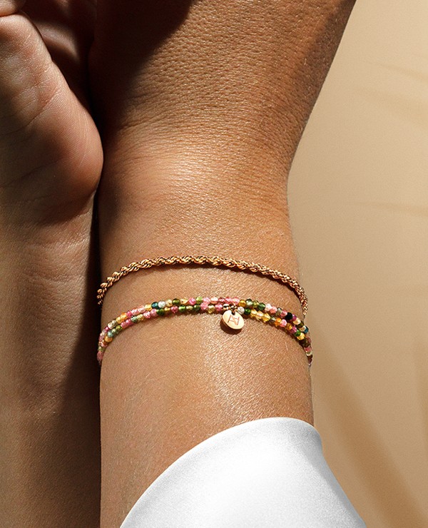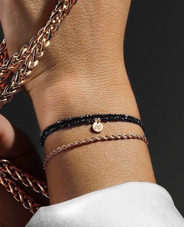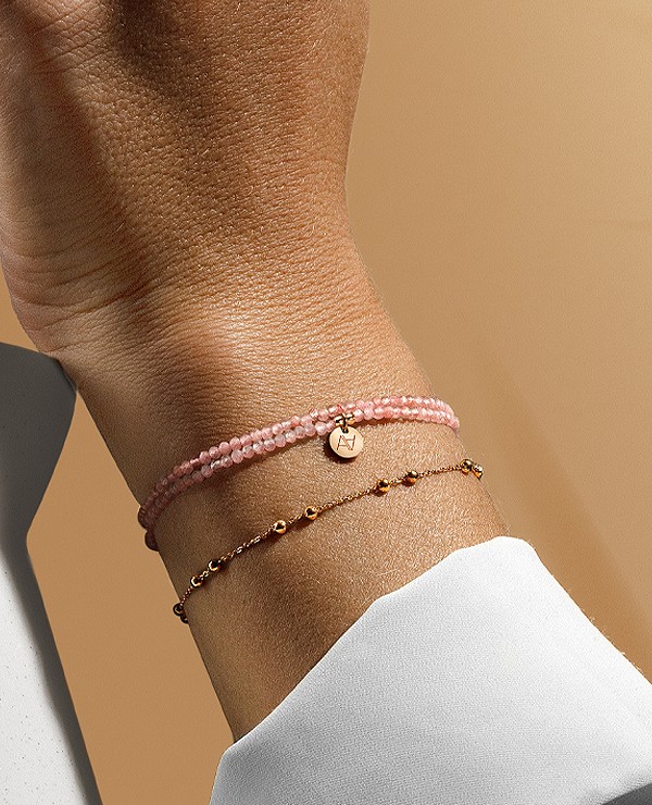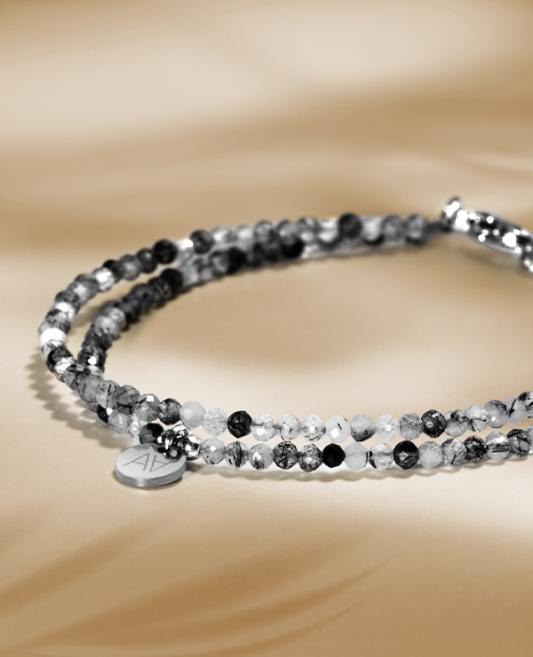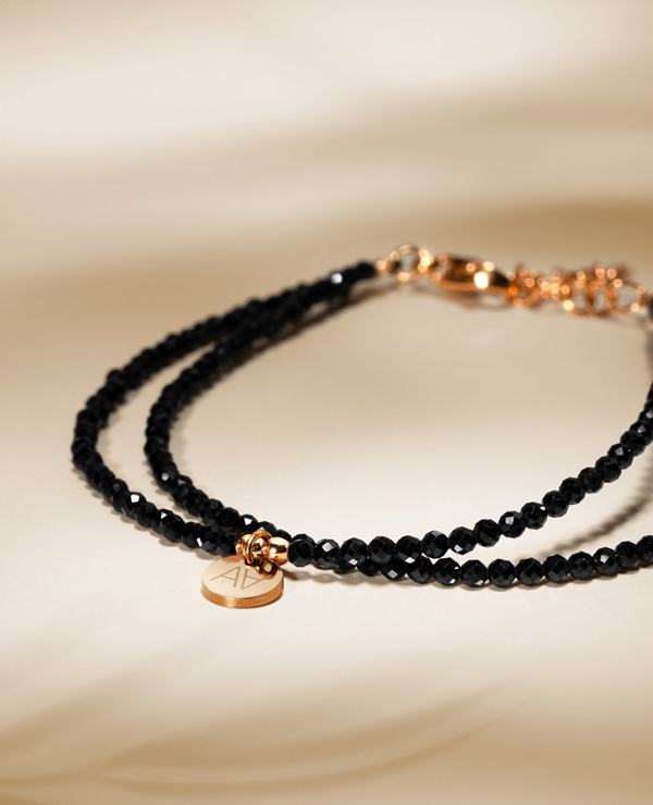 - Matière du bracelet Acier rosé inoxydable et tourmaline noire