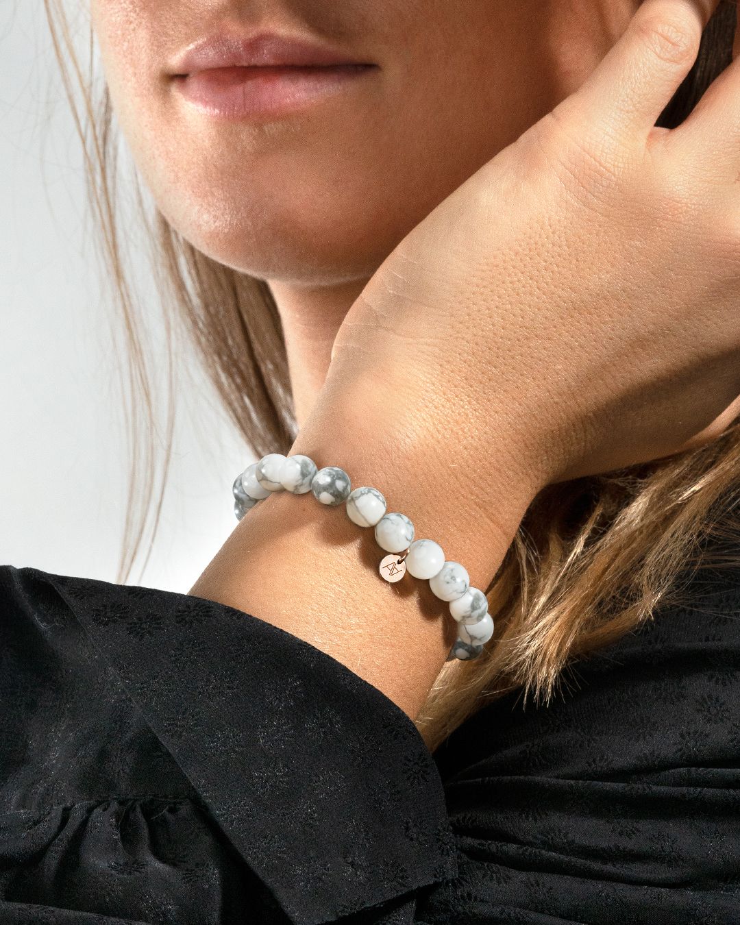- Matière du bracelet Acier rosé inoxydable et howlite blanche