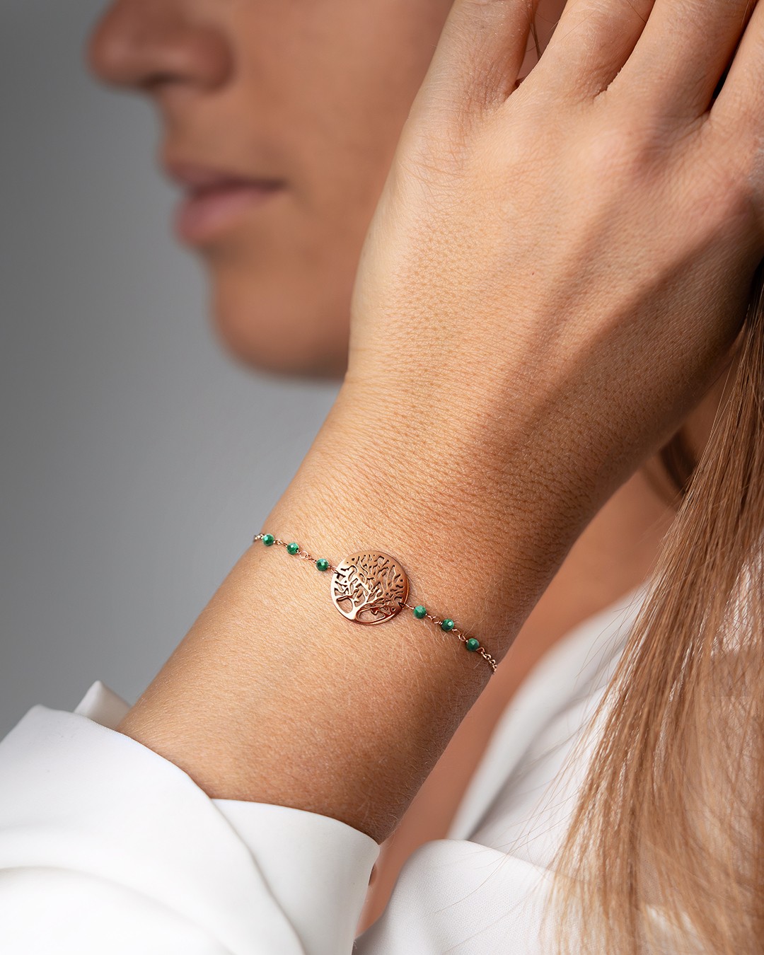 - Matière du bracelet Acier rosé inoxydable et malachite