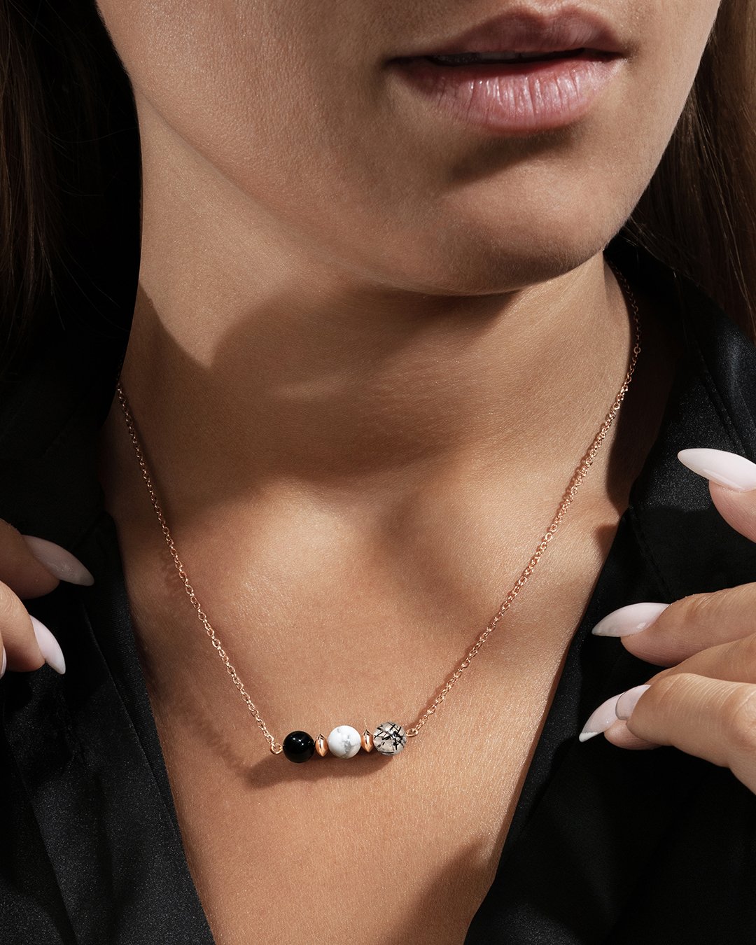 L'association du Quartz Rutile, de l'Howlite et de l'Onyx évoque une danse harmonieuse entre le ciel et la terre, offrant une symbiose d'énergies propices à un ancrage profond tout en revitalisant le bien-être mental et spirituel.