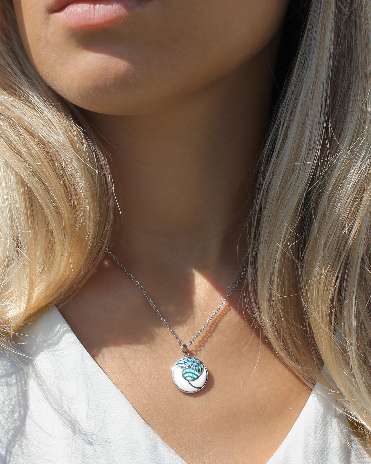 Ses magnifiques couleurs claires renforcent la symbolique de ce pendentif pour en faire une pièce unique.