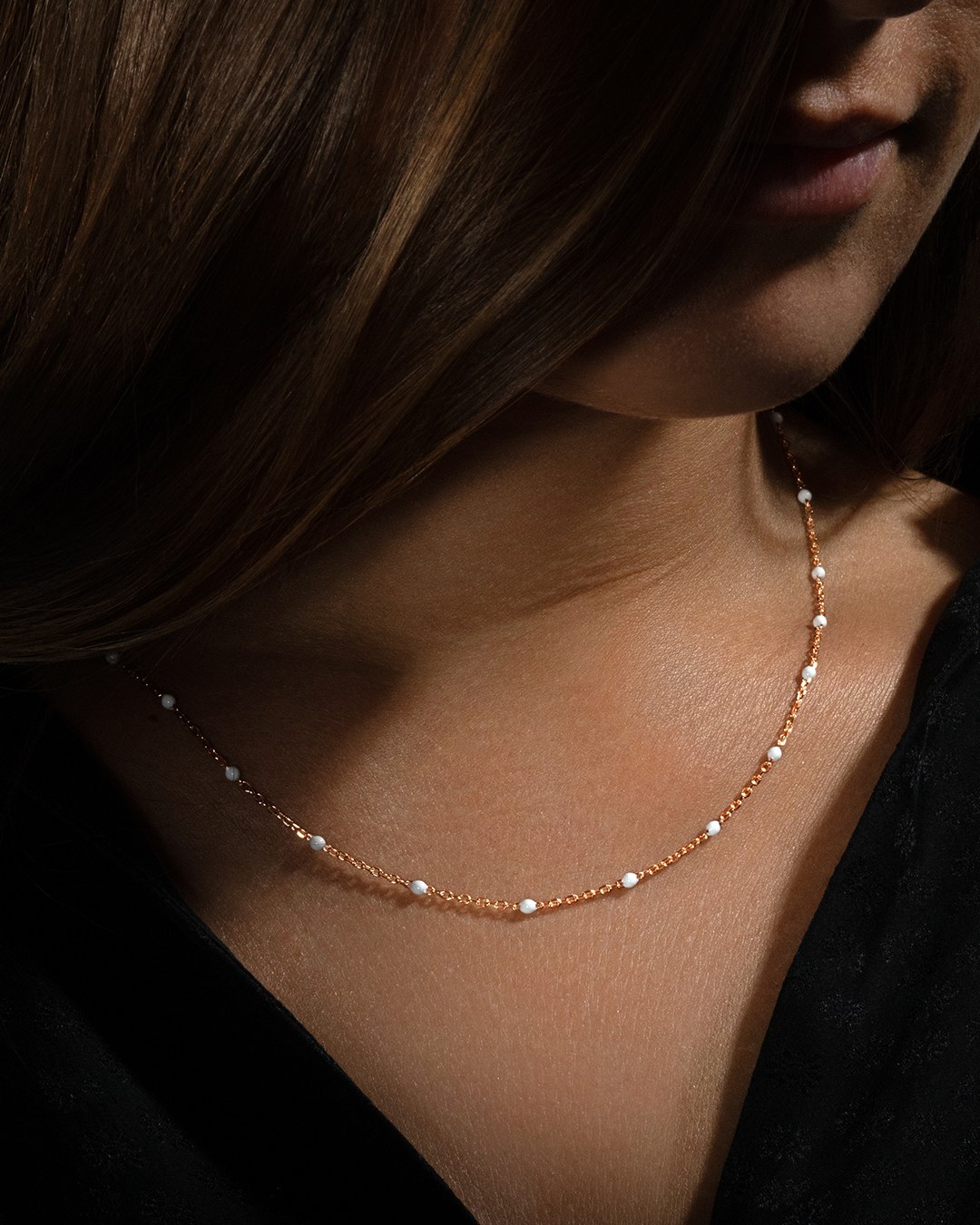 Découvrez la parfaite rencontre entre l'émail et la nacre. Une collection de bijoux uniques où l'association des matières s'inspire de la beauté de l'Italie.