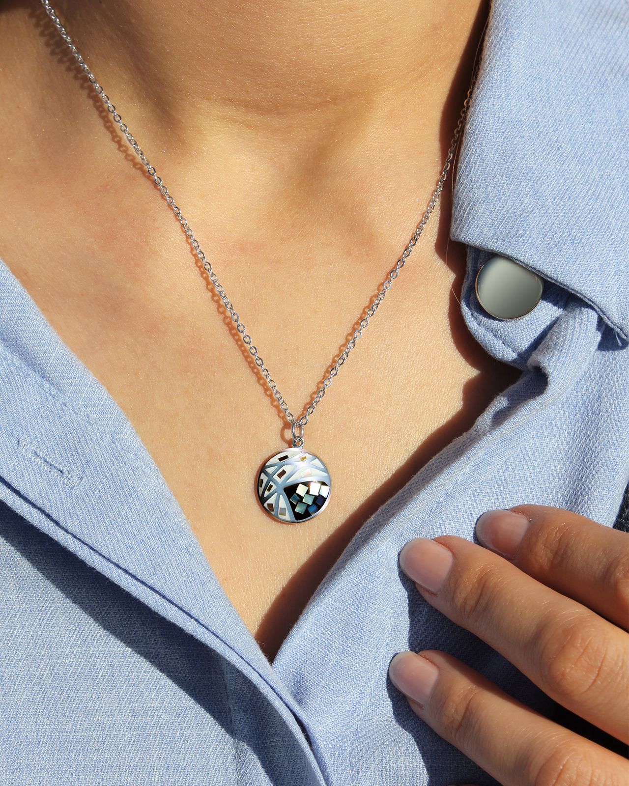Ses magnifiques formes géométriques délicatement nacrées renforcent l'identité de ce bijou.