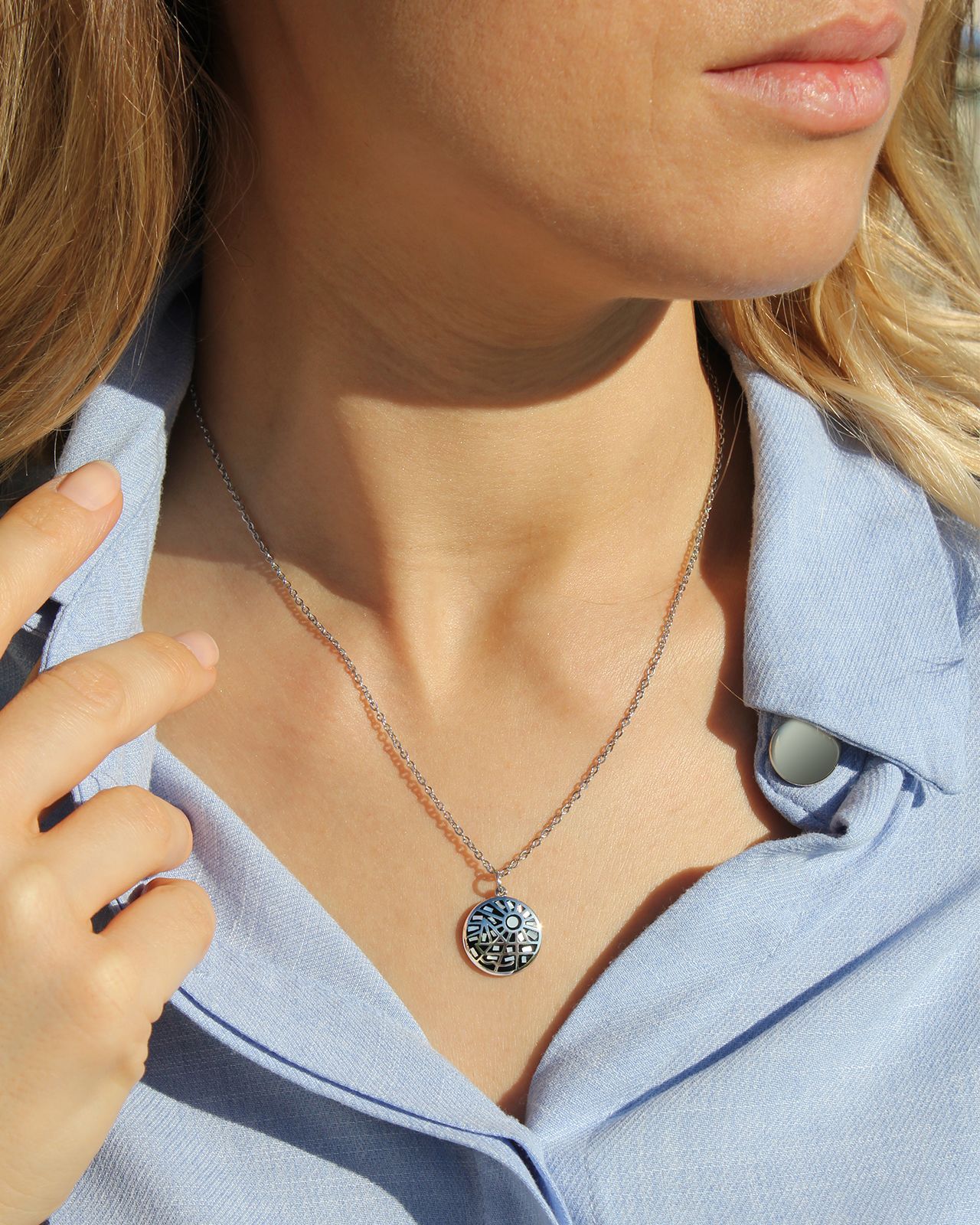 La délicatesse de ses motifs, associés à la discrétion de sa chaîne en fera le bijou incontournable pour un rendu sobre et élégant.