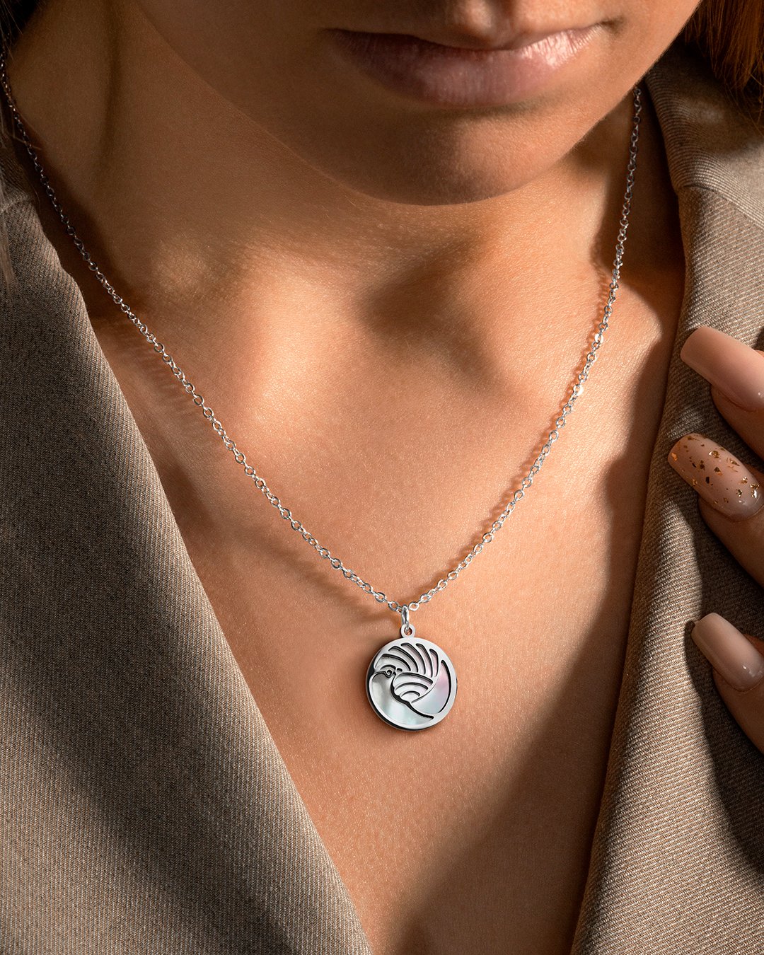 La nacre de son médaillon évolue face aux rayons du soleil et viendra merveilleusement s'associer à tous vos looks.