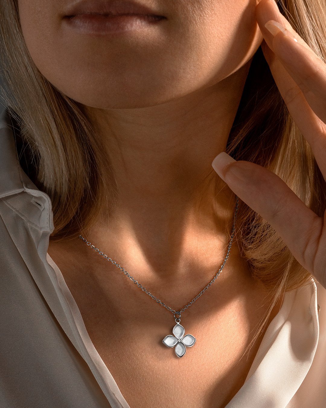 La nacre de son médaillon changeant de couleur aux reflets du soleil, lui permettra de s'assortir à tous vos looks.