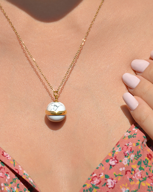- Longueur de la chaine Howlite Blanche