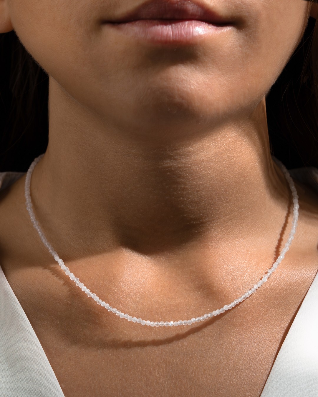 Chaque bijou est composé de pierres naturelles, uniques par leurs nuances et leurs reflets. De légères variations peuvent donc apparaître, faisant de chaque collier une pièce singulière et authentique.