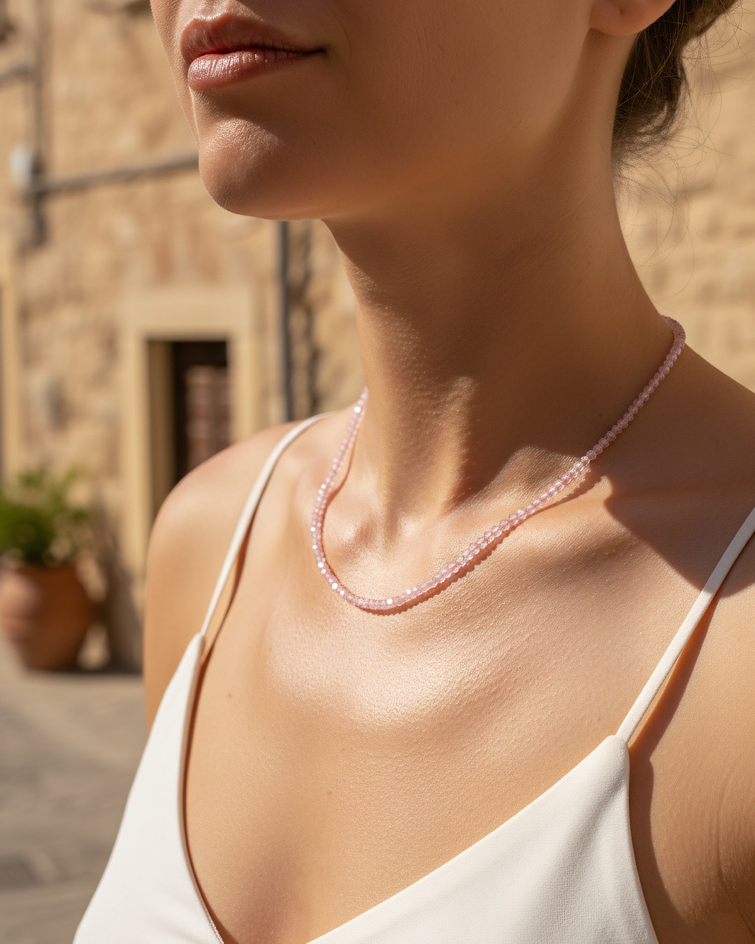 Chaque bijou est composé de pierres naturelles, uniques par leurs nuances et leurs reflets. De légères variations peuvent donc apparaître, faisant de chaque collier une pièce singulière et authentique.